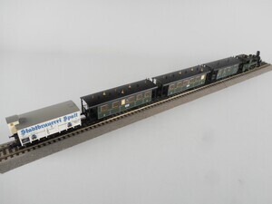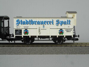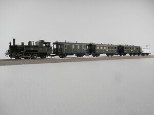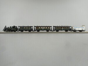 Trix H0 International 21229 Zugpackung: "Bayerischer Lokalbahn-Zug" Der Zug stellt einen kurzen Zug der Königlich Bayerischen Staats-Bahn in der Zeit vor dem ersten Weltkrieg dar. Lokalbahn-Dampflok Gattung D XI. Betriebs-Nr. 2749 Tender-Dampflok mit 3 Kuppelachsen und 1 Nachlauf-Achse, Bauart C1 Kessel grün mit schwarz-goldener Beschriftung und goldenen Zierlinien, Räder und Fahrgestell rot. Antrieb im Führerhaus, 4 Achsen angetrieben. Gehäuse der Lok aus Kunststoff. Je 3 beleuchtete Stirnlampen beidseitig. Radkränze brüniert und Gestänge vernickeltes Metall. "Fleischmann Profi-Kupplung" (Kurzkupplung). Wagen: Gepäckwagen "PPostL 21026". Aufbau mit beidseitigen Einstiegsbühnen. Farbe grün mit weißer Beschriftung, Dach schwarz mit Messing-Dachlüftern. Personenwagen 2./3. Klasse "BCL 20087 Augsburg". Aufbau mit beidseitigen Einstiegsbühnen. Farbe grün mit weißer Beschriftung, Dach schwarz mit Messing-Dachlüftern. Personenwagen 3. Klasse "CL 20798 Augsburg". Aufbau mit beidseitigen Einstiegsbühnen. Farbe grün mit weißer Beschriftung, Dach schwarz mit Messing-Dachlüftern. Bierkühlwagen "Stadtbrauerei Spalt" Betr. Nr. 85642. Hölzerner Wagenkasten weiß mit bunter Beschriftung, hochstehendes Bremserhaus, Dach hellgrau mit Eisklappen. Alle Waggons mit brünierten Speichenrädern mit grauen Speichen. Kurzkupplungs-Kinematik mit "Fleischmann Profi-Kupplungen". Original-Verpackung aus Karton mit Kunststoff-Einsatz. 2-Leiter Gleichstrom-System analog. Epoche 1 (Länderbahn-Zeit 1835 - 1920)