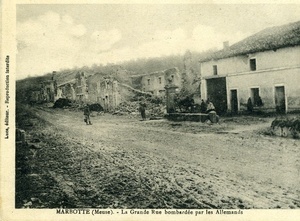 Auf der Vorderseite: Fotografie der bombardierten Kirche St. Agnant im Département Meuse. Bildunterschrift: "St. Agnant (Meuse). - L’Eglise", Herausgeber: "Luce". Die Rückseite ist unbeschriftet.