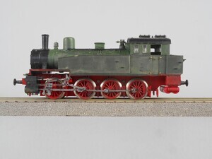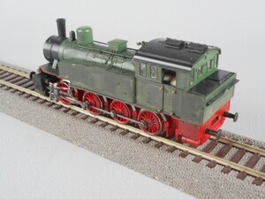 Trix H0 International Tender-Dampflok Gattung T13 der Königlich Preußischen Eisenbahn-Verwaltung (K.P.E.V.). Nicht vollendetes Umbauprojekt mit Handbemalung, Fehlteile (Laternen, Griffstangen, Kupplungen), ohne Beschriftung. Tender-Dampflok mit 4 Kuppelachsen. Kessel, Führerhaus und Wasserkästen grün, Räder und Fahrgestell rot. Antrieb im Führerhaus auf 4 Achsen. Gehäuse aus Kunststoff. Radkränze und Gestänge vernickeltes Metall. Verpackung aus Karton mit Kunststoff-Einsatz. 2-Leiter Gleichstrom-System analog. Epoche 1 (Länderbahn-Zeit 1835 - 1920)