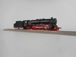 Roco H0 Schnellzug-Dampflok Baureihe 01 der Deutschen Reichsbahn-Gesellschaft. Einheitsbauart. Umbauprojekt mit Ziel einer Reichsbahn-Dampflok in verbesserter Detaillierung zu schaffen. Fehlteile: Windleitbleche, Beschriftung, Laternen vorne Kleinserien-Teile: Tendergehäuse, Drehgestellblenden (unlackiert), Federpuffer. Schlepptender-Dampflok mit 3 Kuppelachsen und 2 Vorlaufachsen und 1 Nachlaufachse (2`C 1) und 4-achsigem Tender. Kessel, Führerhaus und Tenderaufbau schwarz, Räder und Fahrgestell rot. Antrieb im Tender, 3 Achsen angetrieben. Gehäuse aus Kunststoff, Tendergehäuse Zinkdruckguss. Radkränze und Gestänge vernickeltes Metall. Original-Verpackung aus Karton mit Kunststoff-Einsatz. 2-Leiter Gleichstrom-System analog. Epoche 2 (Staatsbahn-Zeit 1920-1945)