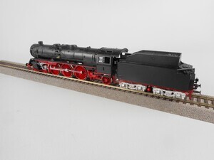 Roco H0 Schnellzug-Dampflok Baureihe 01 der Deutschen Reichsbahn-Gesellschaft. Einheitsbauart. Umbauprojekt mit Ziel einer Reichsbahn-Dampflok in verbesserter Detaillierung zu schaffen. Fehlteile: Windleitbleche, Beschriftung, Laternen vorne Kleinserien-Teile: Tendergehäuse, Drehgestellblenden (unlackiert), Federpuffer. Schlepptender-Dampflok mit 3 Kuppelachsen und 2 Vorlaufachsen und 1 Nachlaufachse (2`C 1) und 4-achsigem Tender. Kessel, Führerhaus und Tenderaufbau schwarz, Räder und Fahrgestell rot. Antrieb im Tender, 3 Achsen angetrieben. Gehäuse aus Kunststoff, Tendergehäuse Zinkdruckguss. Radkränze und Gestänge vernickeltes Metall. Original-Verpackung aus Karton mit Kunststoff-Einsatz. 2-Leiter Gleichstrom-System analog. Epoche 2 (Staatsbahn-Zeit 1920-1945)