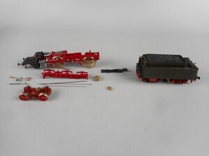 Roco H0 04125 Schnellzug-Dampflok Preußische Bauart (S 10). Unvollendetes Modell-Umbauprojekt, bestehend aus Tender, Fahrgestell und einigen Zurüstteilen in hoher Kleiserien-Qualität aus Messing-Feinguss (Radsätze mit niedrigem Spurkranz). Ohne Kessel, Führerhaus Tender ohne Motor. Original-Verpackung aus Karton mit Kunststoff-Einsatz. 2-Leiter Gleichstrom-System analog. Epoche 2 (Staatsbahn-Zeit 1920-1945)