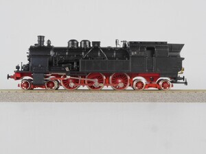Liliput 7803 Tender-Dampflok Baureihe 78 der Deutschen Reichsbahn-Gesellschaft. Preußische Bauart (T 18). Unvollendetes Umbauprojekt ohne Beschriftung, unvollständiges Treibgestänge. Unlackierte Messing Kleinserien-Laternen hinten Tender-Dampflok mit 3 Kuppelachsen und je 2 Vorlauf- und Nachlauf-Achsen (Bauart 2´C 2´ h2). Kessel, Führerhaus und Tenderaufbau schwarz, Räder und Fahrgestell rot. Antrieb im Führerhaus, 3 Achsen angetrieben. Gehäuse aus Kunststoff. Radkränze und Gestänge vernickeltes Metall. An Rückseite Standard-Kupplungshaken. Original-Verpackung aus Karton mit Kunststoff-Einsatz. 2-Leiter Gleichstrom-System analog. Epoche 2 (Staatsbahn-Zeit (1920-1945)