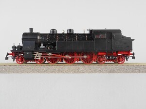 Märklin Hamo (Gleichstrom) 8306 Tender-Dampflok Baureihe 78 der Deutschen Reichsbahn-Gesellschaft. Preußische Bauart (T 18). Unvollendetes Umbauprojekt ohne Beschriftung, ohne Dampfspeisepumpe. Tender-Dampflok mit 3 Kuppelachsen und je 2 Vorlauf- und Nachlauf-Achsen (Bauart 2´C 2´ h2). Kessel, Führerhaus und Tenderaufbau schwarz, Räder und Fahrgestell rot. Antrieb im Führerhaus, 3 Achsen angetrieben. Gehäuse aus Kunststoff, Kessel aus Metallguss. Radkränze und Gestänge vernickeltes Metall. Beidseitig Standard-Kupplungshaken. Original-Verpackung aus Karton mit Kunststoff-Einsatz. 2-Leiter Gleichstrom-System analog. Epoche 2 (Staatsbahn-Zeit (1920-1945)