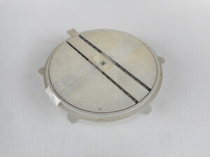 Kunststoffbausatz einer einfachen, kleinen Drehscheibe zum Wenden von Lokomotiven aus der Frühzeit der Eisenbahn (19. Jahrhundert). In einem flachen, zylindrischen Gehäuse ist eine runde Scheibe mit Gleisen drehbar gelagert. Die Gleise sind nicht montiert. Weitere Teile im Inneren des Gehäuses. Hersteller unbekannt.