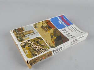 Karton eines Kunststoff-Gebäudebausatzes Inhalt unvollständig. Vorhanden sind: teilmontierte Pferdewagen, Kühe, Schafe, Hühner, Zaunpfosten und "Stacheldraht", 1 Person. Baugröße H0, Maßstab 1:87