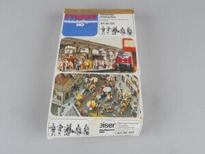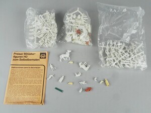 Karton mit Kunststofffiguren zum selbstbemalen Preiser 235 Inhalt geöffneter Kunststoffbeutel mit vielen weißen Figuren, dazu weitere Beutel mit Tieren. Anleitung. Baugröße H0, Maßstab 1:87
