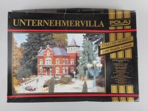 Pola 822 Karton Gebäude-Bausatz "Unternehmervilla" im Stil der Neorenaissance (Gründerzeit). Limitierte Sonderserie. Inhalt nicht vollständig, andere Teile darin: Zoo-Tiere, Preiser-Figuren (Dienstpersonal?), Schiene mit Schotterbett, sonstige Einzelteile. Karton deformiert. Maßstab 1:87 (Baugröße H0)