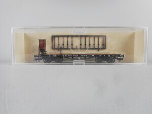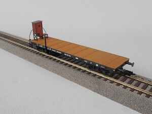 Fleischmann 5285 K 4-achsiger Flachwagen mit Bremserhaus Gattung SSk der Deutschen Reichsbahn-Gesellschaft. Betriebsnummer "Köln 916" Fahrgestell schwarz mit weißer Beschriftung. Beiliegend 12 schwarze Steckrungen. Bremserhaus rotbraun, Ladefläche braun (Holzbohlen). Kurzkupplungs-Kinematik, beidseitig "Fleischmann Profi-Kupplung"(Kurzkupplung). Speichenräder in Fachwerk-Drehgestellen. Baugröße H0 (Maßstab 1:87) 2-Leiter Gleichstrom-System (isolierte Achsen) Epoche 2 (Staatsbahn-Zeit 1920 - 1945)