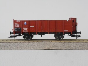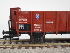 Fleischmann H0 5863 K 2 Achsiger offener Güterwagen mit Bremserhaus und hohen Bordwänden der Königlich Bayerischen Staats-Bahn, Gattung Ommk (u). Wagenaufbau rotbraun mit weißer Beschriftung, Fahrgestell schwarz mit weißer Beschriftung. Betriebsnummer "München 65001". Ausgestattet mit Speichenrädern, Kurzkupplungs-Kinematik und beidseitig "Fleischmann Profi-Kupplung" (Kurz-Kupplung). In originaler Kunststoff-Verpackung. Nenngröße H0 (Maßstab 1:87), 2-Leiter Gleichstrom-System Epche 1 (Länderbahn-Zeit 1835 - 1920)