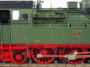 Fleischmann 4820 Tender-Dampflok Gattung T 18 der Königlich Preußischen Eisenbahn Verwaltung. Betriebs-Nr. "8957 Essen" Sonderserie Heißdampf-Tender-Dampflok für Güter- und Personenzugdienst mit 3 Kuppelachsen, 2 Vorlauf-Achsen und 2 Nachlauf-Achsen (2´C 2´ h2). Spätere Baureihe 78, gebaut 1912 - 1927. Kessel, Führerhaus und Wasserkästen grün mit goldener und weißer Beschriftung, Rauchkammer schwarz, Räder und Fahrgestell rotbraun. Antrieb im Kessel, 3 Achsen angetrieben. Gehäuse der Lok aus Kunststoff. Je 2 beleuchtete Stirnlampen beidseitig. Radkränze brüniertes Metall und Gestänge vernickelt. Beidseitig "Fleischmann-Profi-Kupplung" (Kurzkupplung). Original-Verpackung aus Karton mit Kunststoff-Einsatz. Beiligend Anleitung. 2-Leiter Gleichstrom-System analog. Epoche 1 (Länderbahn-Zeit 1835 - 1920)