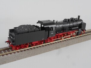 Fleischmann 4160 Personenzug-Dampflok Baureihe 38 der Deutschen Reichsbahn-Gesellschaft. Preußische Bauart (P 8). Betriebs-Nr. 38 2609 Schlepptender-Dampflok mit 3 Kuppelachsen, 2 Vorlaufachsen und 4-achsigem Tender. Kessel, Führerhaus und Tenderaufbau schwarz, Räder und Fahrgestell rot. Beschriftung weiß. Antrieb im Tender, 3 Achsen angetrieben. Gehäuse aus Kunststoff. Je 2 beleuchtete Stirnlampen an Lok und Tender. Radkränze und Gestänge vernickeltes Metall. Keine Kupplung. Original-Verpackung aus Karton mit Kunststoff-Einsatz. 2-Leiter Gleichstrom-System analog. Epoche 2 (Staatsbahn-Zeit 1920-1945)