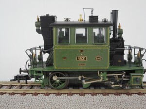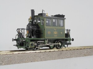 Trix H0 International 22410 Kleine Nebenbahn-Dampflok Gattung Pt 2/2 der Königlich Bayerischen Staats Bahn. Betriebs-Nr. 4531 Spätere Baureihe 98 Anfang des 20. Jhds. entwickelte Lokalbahn/ Nebenbahnlokomotive für Einmannbetrieb durch automatische Schüttvorrichtung zur Feuerung. Aufgrund des dominanten Führerhaus mit vielen Fenstern, das den Großteil des Kessels überdeckt, bekam die Lok den Spitznamen "Glaskasten". Die Lok hat 2 Kuppelachsen und Blindwelle. Kessel, Führerhaus und Tenderaufbau grün, Rauchkammer schwarz, Räder und Fahrgestell rotbraun. Beschriftung gold und schwarz, Zierlinien gelb. 2 Achsen angetrieben. Gehäuse aus Kunststoff. Beidseitig je 3 beleuchtete Stirnlampen. Radkränze brüniertes Metall, Gestänge vernickelt. An Tenderseite "Fleischmann Profi-Kupplung" (Kurz-Kupplung). Original-Verpackung aus Karton mit Kunststoff-Einsatz. Beiligend Anleitung und Kupplungshaken. 2-Leiter Gleichstrom-System analog. Epoche 1 (Länderbahn-Zeit 1835 - 1920)