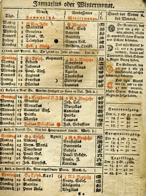 Kalender und Almanache waren bis zum 19. Jh. ein populäres Lektüremedium für breite Bevölkerungsschichten. In Straßburg wurden sogar mehrere dieser Kalender verlegt. Der große Straßburger Hinkende Bote erschien bei Le Roux. Wie einige andere Verleger in frankophonen Gebieten gab Le Roux mit dem Grand Messager boitteux de Strasbourg auch eine französische Ausgabe des Kalenders mit identischen, lediglich übersetzten Inhalten heraus. Wie für die Gattung der Volkskalender üblich, enthält der Große Straßburger Hinkende Bote einen Kalender nach verschiedenen Zeitrechnungen und so genannte astrologische Praktika (auf Astrologie beruhende Wettervorhersagen und Anweisungen), Termine für Messen und Märkte in der Region, Anekdoten, Platz für eigene Eintragungen, historische Begebenheiten und politische Neuigkeiten. Die Ausgabe von 1826 enthält außerdem zum Beispiel Karten zu den Schlachten bei Aspern und bei Wagram aus dem Fünften Koalitionskrieg und eine Genealogie des "rheinischen Bundes", womit der Rheinbund von 1806 gemeint ist. Auf dem Titelblatt des Straßburger Kalenders ist der namengebende "Hinkende Bote" abgebildet. Häufig waren es invalide Soldaten oder ausgediente Handlanger, die versuchten, sich als Kolporteure von Nachrichten und Geschichten oder als Verkäufer von Volkskalendern ein Auskommen zu sichern. Kalender mit "hinkenden Boten" im Titel waren vor allem im südwestdeutschen Raum, der Schweiz und dem Elsass verbreitet. [Johanna Kätzel]