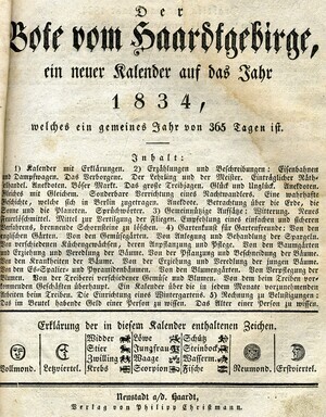 Der Bote vom Haardtgebirge, ein neuer Kalender für das Jahr 1834