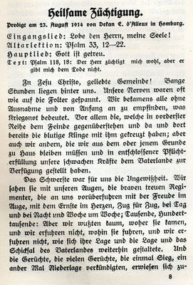 Sammelschrift Kriegspredigten, -andachten und -gebete