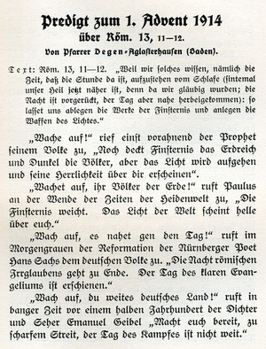 Mit Gott wollen wir Taten tun! Kriegspredigten, -betstunden und -gebete unter Mitwirkung mehrerer Geistlichen, herausgegeben von Pfarrer D. Risch. Neue Folge + Advent-Neujahr. Ein Teil des Reinertrages dient zur Schaffung guter Büchereien in Kriegslazaretten.; Verlag des Evang. Vereins, Kaiserslautern; Druck von Emil Rohr, Buchdruckerei- u. Verlagsgesellschaft m.b.H. Kaiserslautern
