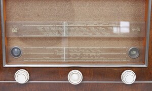 Die Firma Funktechnische Werke in Füssen - kurz FWF genannt - bauten nicht sehr viele Radios. Unser Empfänger, der FWF - Typ Heroton 662 W wurde von 1950 bis 1951 produziert. Weder technisch noch optisch hatte das Radio etwas Besonderes zu bieten. Ausgestattet mit den Wellenbereichen MW/LW und KW, die mit mehreren Bändern. UKW ist lediglich „vorbereitet“. Auffällig ist die Senderskala. Sie besteht aus neutralem Glas auf das die Stationen in einem Eierschalenton aufgedruckt sind. Die Glasscheibe ist horizontal zwei geteilt. Die obere Scheibe ist den Lang und Mittelwelle Stationen vorbehalten, die Untere den Kurzwellensendern. Mit dem rechten Drehschalter gelingt, mit kräftigem Druck, die Einstellung der Wellenbereiche. Mit dem mittleren Drehknopf erfolgt die Senderwahl und mit dem Linken Ein/Aus und –Laut/Leise. Rückseitige sind Anschlüsse für Platte und Tonband sowie Antenne, Erde und Zweitlautsprecher eingebaut. Im Geschäft kostete der Apparat 335 DM.