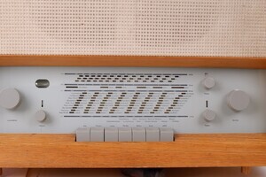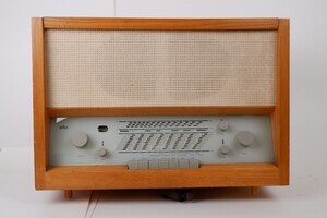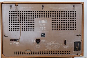 Die Firma Braun aus Frankfurt baute in den Jahren 1956 bis 1958 das Modell TS 2. Es besticht durch seine einfachen, klaren Linien, die dem Zeitgeist entsprachen. Das Gehäuse ist aus Holz und hell furniert. Wie üblich in dieser Zeit, wurde die Senderskala samt Bedienknöpfen unterhalb der Lautsprecher angeordnet. Beides, sowie die Drucktasten sind in einem hellen Grauton gehalten. Über die Drucktasten werden die Wellenbereiche und externe Geräte eingeschaltet. Die Drehregler dienen der Lautstärke, der Senderwahl, den Klangreglern und der Ferritantenne. Rückseitig sind Anschlüsse für Plattenspieler, Tonband, Zweitlautsprecher, Antenne und Erde. Für den UKW Betrieb ist eine Antenne eingebaut. Der Vorbesitzer hat, da der Ausschalter defekt ist, in die Zuleitung einen Kippschalter eingebaut. Mit Antenne funktioniert das Radio auf UKW einwandfrei. Der Ladenpreis lag bei 320 DM
