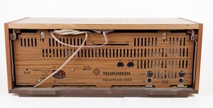 Ein Stereo Regalgerät von Telefunken aus den Jahren 1965 - 1968. Das Radio ist mit Röhren und mit Halbleiter/Transistoren bestückt. Der gesamte Korpus ist aus Holz, Nussbaum furniert. Durch die Möglichkeit die gesamte Front hinter einer Holzklappe zu verstecken, wir das eigentliche Radio im Regal unsichtbar. Nach öffnen der Front, blicken wir auf ein übersichtlich, klar strukturiertes Bedienteil in einem dunkleren Grau mit hellgrauen Tasten und Senderskala. Mittels der Drucktasten sind die Wellenbereiche, verschiedene Filter und externe Geräte schaltbar. Mit den beiden großen Drehschaltern werden die Sender ausgewählt und die Lautstärke der externen Boxen gesteuert. Drei kleine Drehregler regeln die Balance und den Klang. Auf der Rückseite sind Anschlüsse für Tonband, Plattenspieler und die Stereo Boxen vorhanden. Für den Betrieb sind externe Boxen erforderlich. Der Kunde musste 1966 fast 700 DM für das Radio auf den Tisch legen.