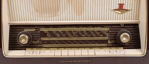 Ein mittleres Tischgerät von NordMende, vermutlich aus dem Jahr 1960. Das Gehäuse ist aus Holz, dunkel furniert und in Hochglanz poliert. Das Bedienfeld und der Lautsprecherbereich ist mit einem elfenbeinfarbenen Bakelit Rahmen umgeben. Die Senderskala, aus Plexiglas, ist dunkelbraun eingefärbt, die Sendestationen in goldfarbener Schrift aufgedruckt. Mit den beiden großen Drehreglern werden die Senderwahl und die Lautstärke geregelt. Sechs Drucktasten stehen für die Wahl der Wellenbereiche MW/LW/KW und UKW, der Zuschaltung des Plattenspielers und die Ausschaltung des Geräts. Mit mehreren kleineren Kippschalter können die Klangfarben reguliert, oder spezielle Einstellungen für Stereo, Bass, Solo oder Jazz vorgenommen werden. Ein Magisches Auge erleichtert die optimale Sendereinstellung. Auf UKW läuft das Radio heute noch einwandfrei. Rückseitig gibt es zwei Anschlüsse, für Plattenspieler bzw Tonband und für einen Zweitlautsprecher.