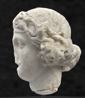 Das kleine Marmorköpfchen zeigt den Weingott Dionysos/Bacchus in jugendlicher Form und der klassisch-griechischen Darstellungsweise. Er trägt langes Haar, eine Binde über der Stirn und einen Efeukranz mit Früchten. Dieses Bildnis war vermutlich in einem Privathaus im Süden des römischen Trier aufgestellt.