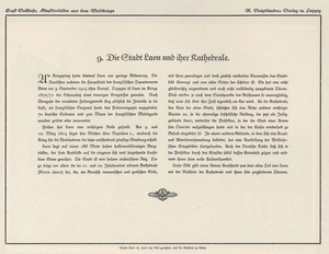 Kunstdruck mit dem Titel: "Die Stadt Laon und ihre Kathedrale"; Künster: Ernst Vollbehr; das Blatt ist Bestandteil einer Mappe von 18 Kunstdrucken mit dem Titel "Künstlerbilder aus dem Weltkriege. An der Westfront vor dem Feinde gemalt, von Ernst Vollbehr, Kriegs- und Kolonialmaler. Farbige Künstlerlithographien nach den Vollbehrschen Studien, ausgeführt in der Kunstdruckerei Künstlerbund, GmbH in Karlsruhe", herausgegeben von R. Voigtländers Verlag, Leipzig