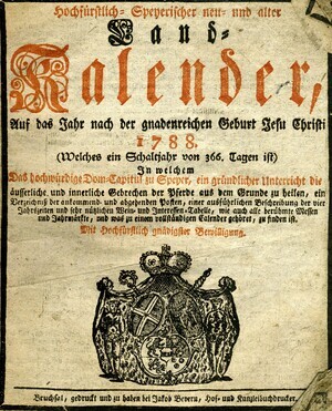 Hochfürstlicher Speyerischer- Landkalender für das Jahr 1788