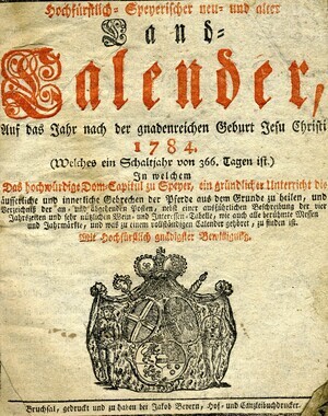 Hochfürstlicher Speyerischer- Landkalender für das Jahr 1784