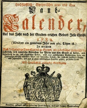 Hochfürstlicher Speyerischer Hof-,Stadt-,Land- und Geschichtskalender für das Jahr 1782