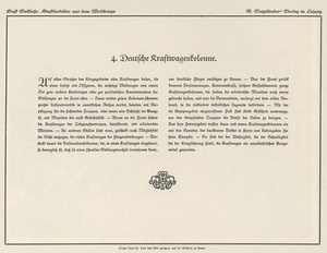 Kunstdruck mit dem Titel: "Deutsche Kraftwagenkolonne"; Künster: Ernst Vollbehr; das Blatt ist Bestandteil einer Mappe von 18 Kunstdrucken mit dem Titel "Künstlerbilder aus dem Weltkriege. An der Westfront vor dem Feinde gemalt, von Ernst Vollbehr, Kriegs- und Kolonialmaler. Farbige Künstlerlithographien nach den Vollbehrschen Studien, ausgeführt in der Kunstdruckerei Künstlerbund, GmbH in Karlsruhe", herausgegeben von R. Voigtländers Verlag, Leipzig