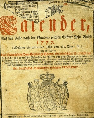 Hochfürstlicher Speyerischer Hof,- Stadt,- Land- und Geschichtskalender für das Jahr 1777