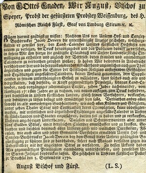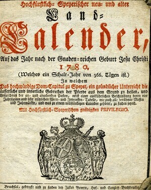 Hochfürstlicher Speyerischer Hof- ,Stadt-, Land- und Geschichtskalender für das Jahr 1780