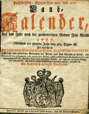 Hochfürstlicher Speyerischer Hof-, Stadt-, Land- und Geschichtskalender für das Jahr 1787