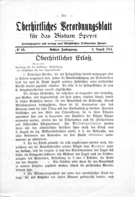 Oberhirtliches Verordnungsblatt für das Bistum Speyer, 2. August 1914