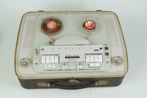 Ein in den Jahren 1964 bis 1966 hergestellter Tonbandkoffer von Grundig. Es ist ein hochwertiges Gerät mit vielen Ausstattungsmerkmalen. Neben den 3 Standard Bandgeschwindigkeiten, 4,75 - 9,5 - 19 cm/sec. können DIA und auch Schmalfilme vertont werden. Dazu sind Anschlüsse für Micro, Radio, Schallplatte und ein Telefonadapter vorhanden. Auch Effektaufnahmen wie Playback bzw. Multiplayback sind möglich. Aufnahmen und Wiedergaben können in Mono und Stereo Qualität erfolgen. Das Halbspurverfahren erlaubt in der Spulengröße 18cm eine Spieldauer, je nach Band, von 8 Std bei Mono bzw 4 Std im Stereo Betrieb. Für dieses Tonbandgerät musste der Käufer 1965 immerhin knapp 900 DM bezahlen. Das waren fast 2 Monatsgehälter eines Arbeiters. Bis zur Schenkung an das Museum war das Gerät im Besitz einer Trierer Familie