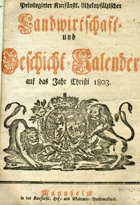 Privilegirter kurpfälzischer Landwirtschaft- und Geschicht-Kalender auf das Jahr 1797