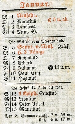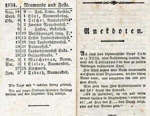 Neuer Sackkalender für das Jahr 1834