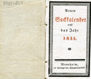 Der volkstümliche Taschenkalender enthält Seiten für jeden Monat und Leerseiten für persönliche Notizen. Er ist in einem Schuber verpackt. 48 Blätter, gedruckt und verlegt im Verlag des Bürgerspitals Mannheim. Genealogie des Haus Baden. Die vier Jahreszeiten mit Hinweisen. Jüdischer Kalender. Neumonde und Feste. Anekdoten.