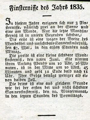 Neuer Sackkalender für das Jahr 1835