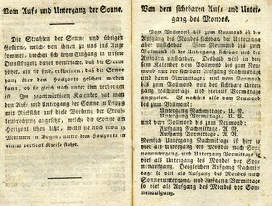Der Taschenkalender für Damen enthält Doppelseiten für jeden Monat, der Beginn der vier Jahreszeiten, die Sonnen- und Mondfinsternisse, Sonnen- und Mond- Auf und Untergänge, die Mondphasen, die Geschichte des 30-jährigen Krieges. Der Kalender in Goldschnitt ist beschädigt und enthält keinen Einband. 388 Seiten. Gedruckt bei Christian Friedrich Solbrig in Leipzig , verlegt bei G.J. Göschen, Leipzig.