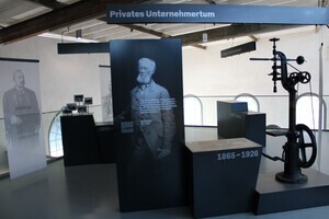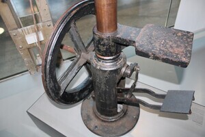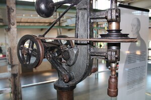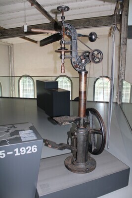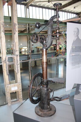 Standbohrmaschine, die aus der früheren Schlosserei der Sayner Hütte unter Krupp stammt. Alfred Krupp hatte die Sayner Hütte 1865 vom preußischen Staat erworben. Die Bohrmaschine blieb nach Schließung der Hütte 1926 in Sayn in Privatbesitz erhalten. Heute wird sie in der Dauerausstellung des Besucherzentrums Sayner Hütte ausgestellt.