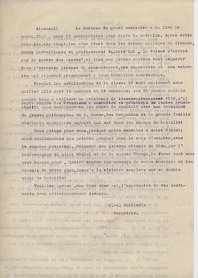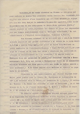 Brief in französischer Sprache, Maschinenschrift, Absender: Grand Seminaire de Vannes, 4 Seiten (2 lose Blätter) vom 1. Oktober 1915