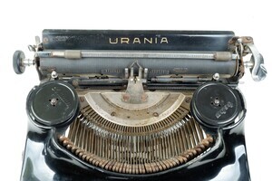 Der Unternehmer Clemens Müller, aus Dresden, startete, als Erster in Deutschland, eine sehr erfolgreiche Nähmaschinenproduktion. Der Geschäftsbereich wurde ab 1909 auf Schreibmaschinen ausgeweitet. Der Büroschreibmaschine „URANIA 1“ folgte 1921 die „URANIA 4“ von der, bis 1928, jährlich 8.528 Stück hergestellt wurden. Der Erfolg seines Wettbewerbers, Seidel und Naumann, mit der Kleinschreibmaschine „ERIKA“ veranlassten Clemens Müller ebenfalls dieses Segment in die Produktion auf zu nehmen. Es waren die Modelle „Perkeo“ (1912) gefolgt von URANIA-Piccola“ (1925) und der eine „Klein-URANIA“ ab 1935. Bei unserem Modell handelt es sich um eine „Klein Urania“, die 1938 hergestellt wurde. Die seitlich eingestanzte Produktionsnummer 176 746 kann eindeutig dem diesem Herstellungsjahr zugeordnet werden. Die Maschine hat eine 4 Reihige QWERT Tastatur, ist mit einer automatischen Bandumschaltung, einem Zeilenschalter und Rücktaste ausgestattet. Leider wurde von einem Hobbybastler im Innern, der Hebemechanismus des Farbbandes beschädigt, was aber reparabel wäre. Rein technisch handelt es sich um eine Typenhebelschreibmaschine mit Wagnergetriebe und Wagenumschaltung. Zwischen Groß- und Kleinschrift wird, entweder durch Absenken des Segments (Segmentumschaltung) oder durch Anheben des Wagens (Wagenumschaltung), gewählt.