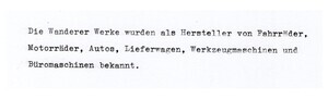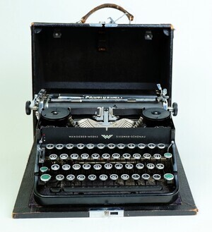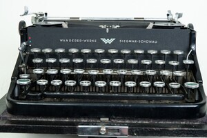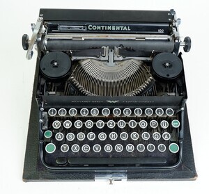 Die Wanderer-Werke waren ein bedeutender deutscher Hersteller von Fahrrädern, Motorrädern, Autos, Lieferwagen, Werkzeugmaschinen und Büromaschinen, dessen Gründung im Jahr 1885 in Chemnitz erfolgte. Die Kraftfahrzeugsparte wurde 1932 in die Auto Union eingebracht und somit zum Vorläufer der heutigen Audi AG. 1903/1904 begann die Serienproduktion von Schreibmaschinen unter der Marke Continental. Sie hatten, auf Grund ihrer soliden Qualität und Funktion und einen ausgezeichneten Ruf. Tragbare Modelle (Kleinschreibmaschinen) wurden von 1929 bis 1948 produziert. 1938 kam das Modell Continental »100« auf den Markt. In einer zeitgenössischen Insertion heißt es: „ Luxusmodell Continental 100 – Hochmoderne Form, elegante Umkleidung, Einzigartiger Bedienungshebel mit vier Funktionen: Setzen und löschen der Randsteller, Setzen und löschen der Kolonnenreiter.“ 1938 wurde auch unsere Maschine mit der Produktionsnummer R 285787 hergestellt. Sie ist sehr gut erhalten und funktioniert tadellos. Beiliegende Gebrauchsanweisung trägt den Stempel des Verkäufers. „Büromaschinen HOPSTOCK & Co, Görlitz, Jakobstrasse 16. Technisch handelte sich um eine Typenhebelmaschine mit Vorderaufschlag, mit vierreihiger Universaltastatur und Wagenumschaltung.