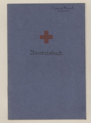 Ausweisbuch des Bayerischen Frauenvereins vom Roten Kreuz für die Helferin Frau Maria Reich. Bestandteil der Mappe "Kriegs-Erinnerungen aus den Jahren 1914 - 20, angelegt Weihnachten 1934" aus dem Nachlass Steigelmann, Landau/Rhodt