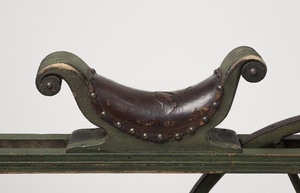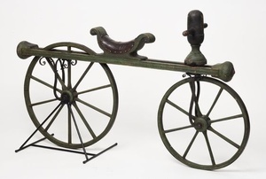 Dieses Laufrad (auch Veloziped oder Draisine genannt) wurde der Überlieferung nach in der ersten Hälfte des 19. Jahrhunderts für die Schnellpostbeförderung im Lautertal benutzt. Eine ganzjährige, dauerhafte Verwendung im Postdienst gilt allerdings wegen der damals schlechten Straßenverhältnisse als unwahrscheinlich. Das Laufrad aus Wolfstein ist eines der weniger bekannten Nachbauten der 1817 berühmt gewordenen Laufmaschine des badischen Erfinders Karl Drais. Laufmaschinen waren wichtige Vorläufer des Fahrrads. Das hier gezeigte Veloziped gelangte um 1900 als Geschenk des Apothekers Gareis aus Wolfstein an das Historische Museum der Pfalz. Restaurierung durch Dipl. Restaurator Philip Mandrys aus Köln im Jahre 2012. Ausführlicher Aufsatz von Philip Mandrys mit dem Restaurierungsbericht und Einzelheiten zur Objektgeschichte in der "Pfälzer Heimat", Jahrgang 65, Heft 1, 2014, S. 4-10. (Vom 20. Oktober 2016 an bis zum Juni 2017 als Leihgabe an das TECHNOSEUM Mannheim für die Ausstellung "Zwei Räder. Freiherr von Drais und die Geschichte des Fahrrades" ausgeliehen.)