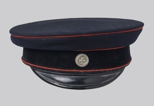 Dr. Theodor Pfülf wurde am 3. September 1866 in Speyer geboren. Er war Regierungspräsident der Pfalz von 1928-1932 und bekleidete seit 20.09.1893 zahlreiche Ämter. Ab dem 09.04.1903 auch an der Regierung der Pfalz. Vom 01. 04.1909 an war er Regierungsrat an der oberfränkischen Regierung in Bayreuth und wurde am 01.07.1916 an die Regierung von Oberbayern in München versetzt. Am 1.10.1917 wurde er als Oberregierungsrat ins Staatsministerium des Inneren berufen. Blau-Schwarzer Stirnstreifen mit roten Vorstößen; Kokarde mit eisernem Kreuz (In treu(e) fest/bayer. Rauten); Lederschirm; Schweißband aus hellbraunem Leder mit unleserlicher Inschrift auf der Stirnseite; Futter aus rotem Samt.