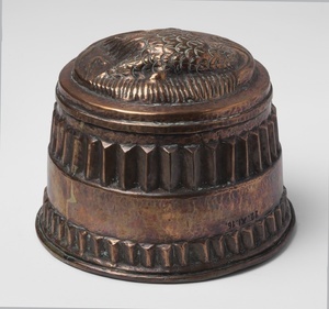 Bundform aus Messing mit getriebenem Schwan. Bei dem Objekt handelt es sich laut Inventarbuch um ein, bei der Reichsmetallsammelstelle/Bezirksamt Landau ausgewähltes Depositum. Vor dem Einschmelzen bewahrt, wurde die Bundform höchstwahrscheinlich nur auf Grund ihrer besonders fein gearbeiteten Verzierung. Das Alter ist unbekannt