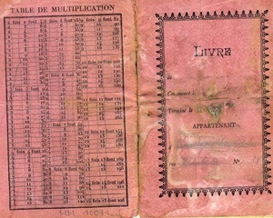 Notizbücher französischer Soldaten, mit Multiplikations-Tabellen, darin liegt eine getrocknete Blüte, 32 Seiten, meist leer